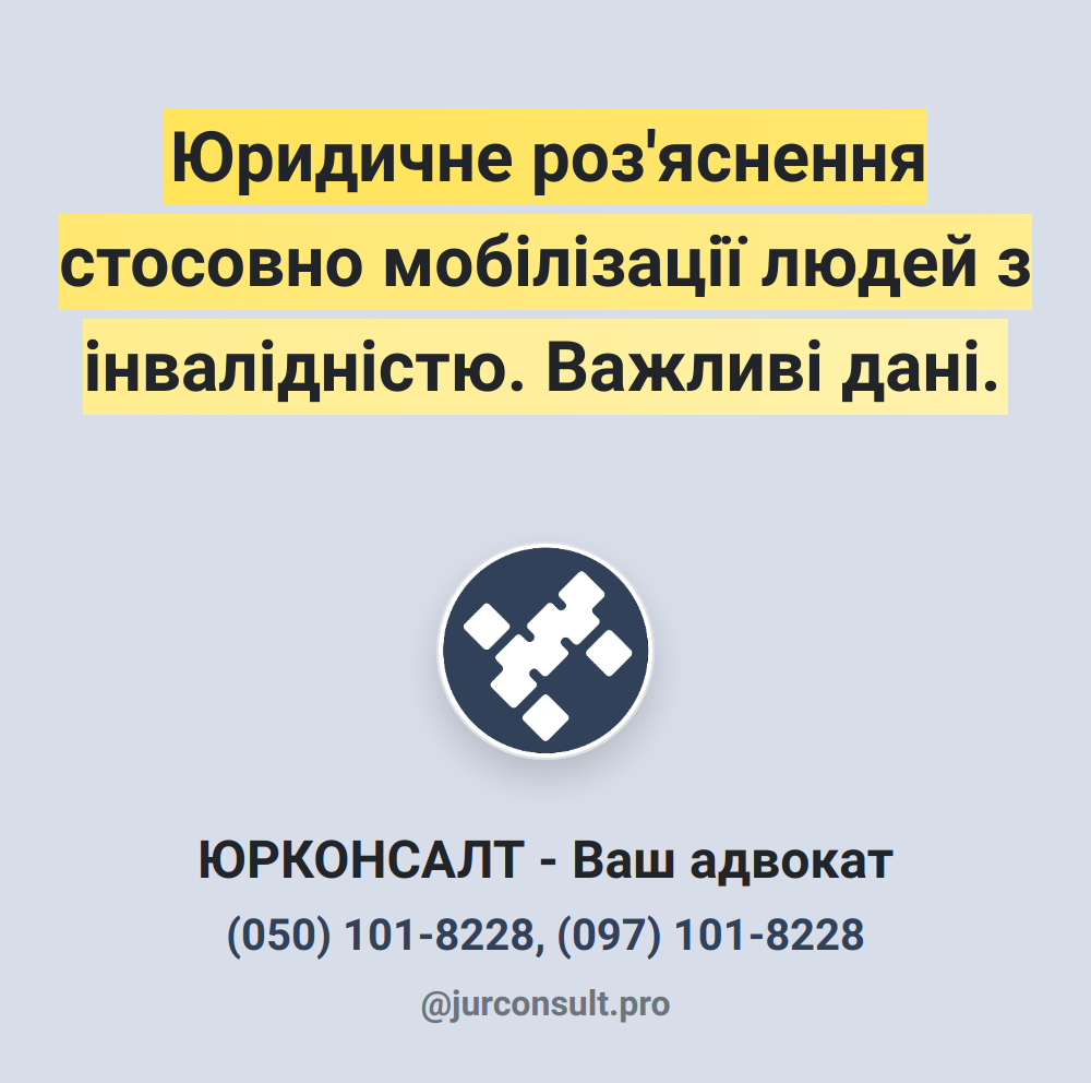 📚На основі існуючого юридичного простору, мобілізація осіб-військовозобов’язаних із будь-якого типу інвалідності може бути здійснена лише за умови вираженої ними власної згоди.