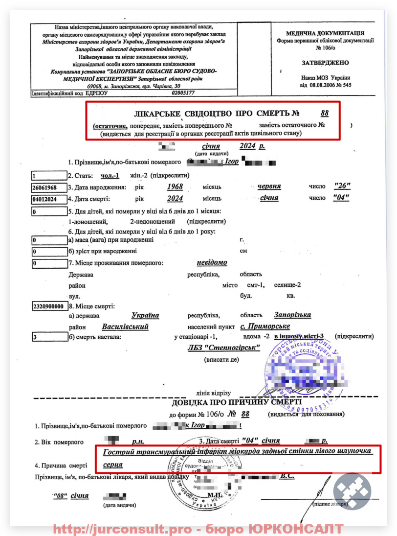 Якщо вам відмовляють у видачі свідоцтва про смерть та подальших виплат через відсутність документів – зверніться до нас за консультацією.