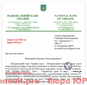 Скарга в НБУ на ТОВ “Діджи Фінанс”
