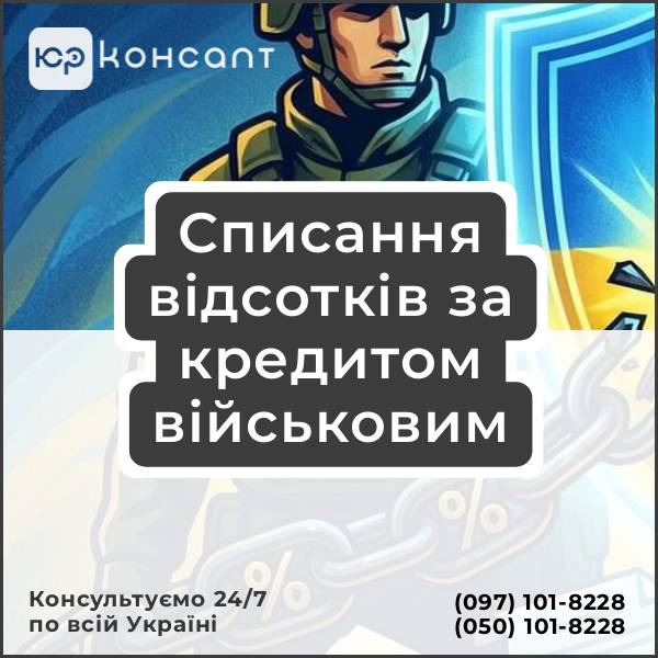 Адвокатське бюро "Юрконсалт" пропонує фахову юридичну допомогу військовослужбовцям, резервістам та мобілізованим щодо списання банківських та фінансових відсотків по кредиту під час воєнного стану.