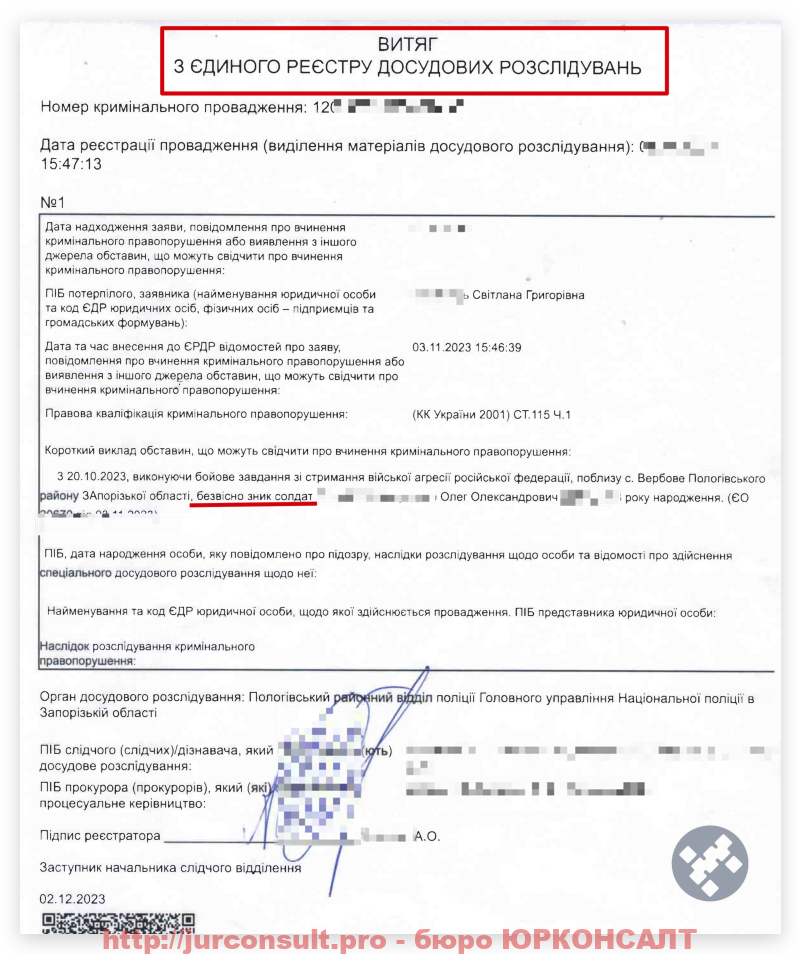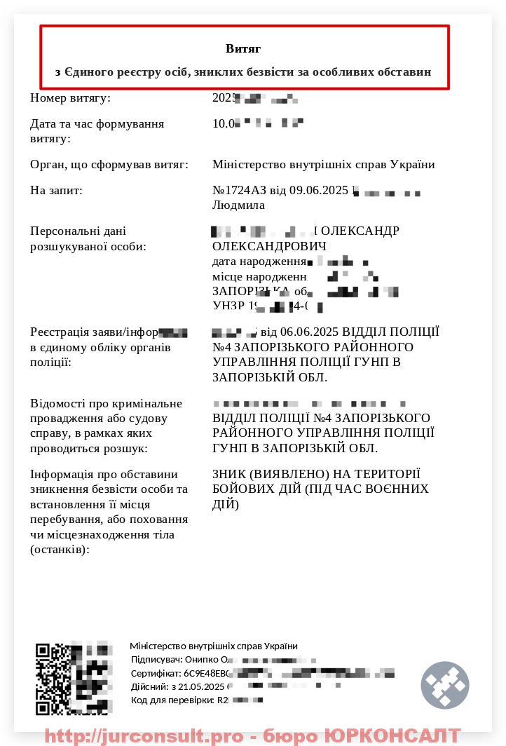 Ми допомагаємо в отриманні витягу з наказу про безвісти зниклого!