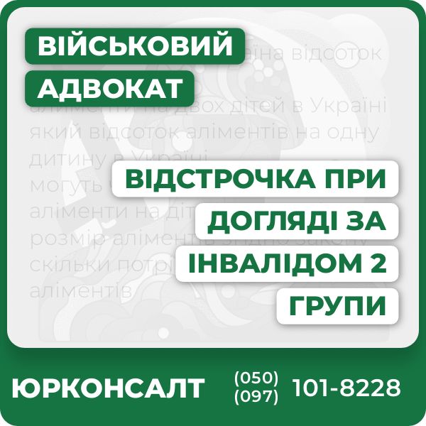 Адвокатське бюро "Юрконсалт" пропонує професійну юридичну допомогу з питань отримання відстрочки від військової служби на підставі здійснення постійного догляду за інвалідом 2 групи.