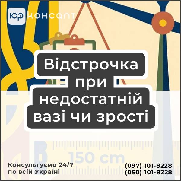 - недостатній фізичний розвиток, вага тіла менше 45 кг або зріст нижче 150 см