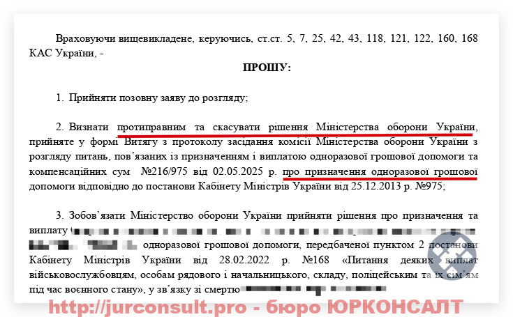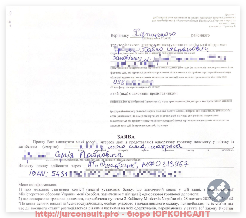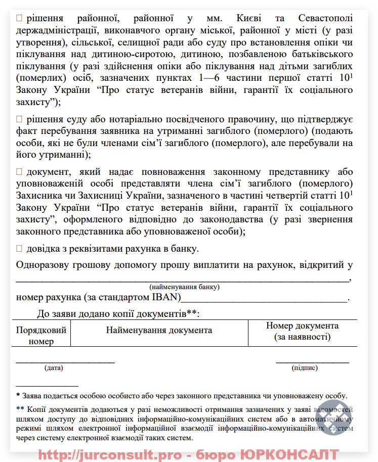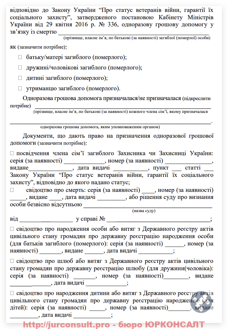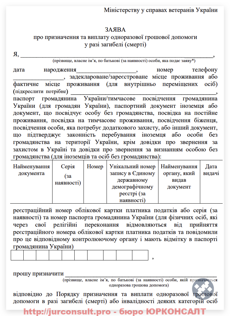Юристи бюро ЮРКОНСАЛТ можуть допомогти вам вірно скласти заяву та супроводити весь процес отримання грошової допомоги.