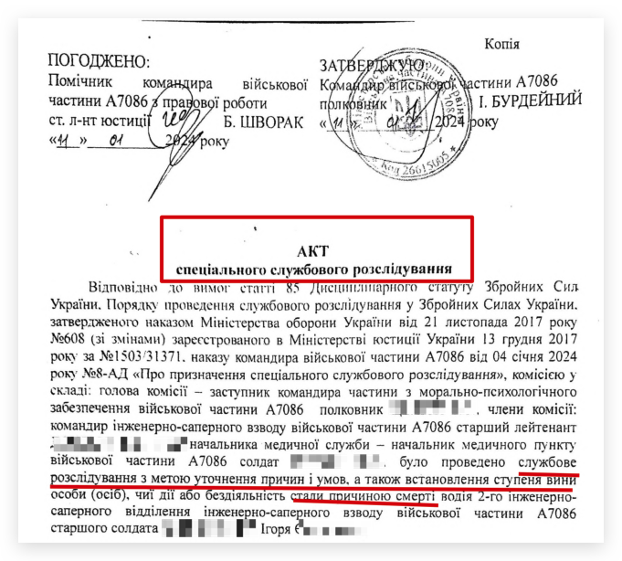 Нижче можете бачити висновок який майже рік не могла отримати сім’я загиблого військового.