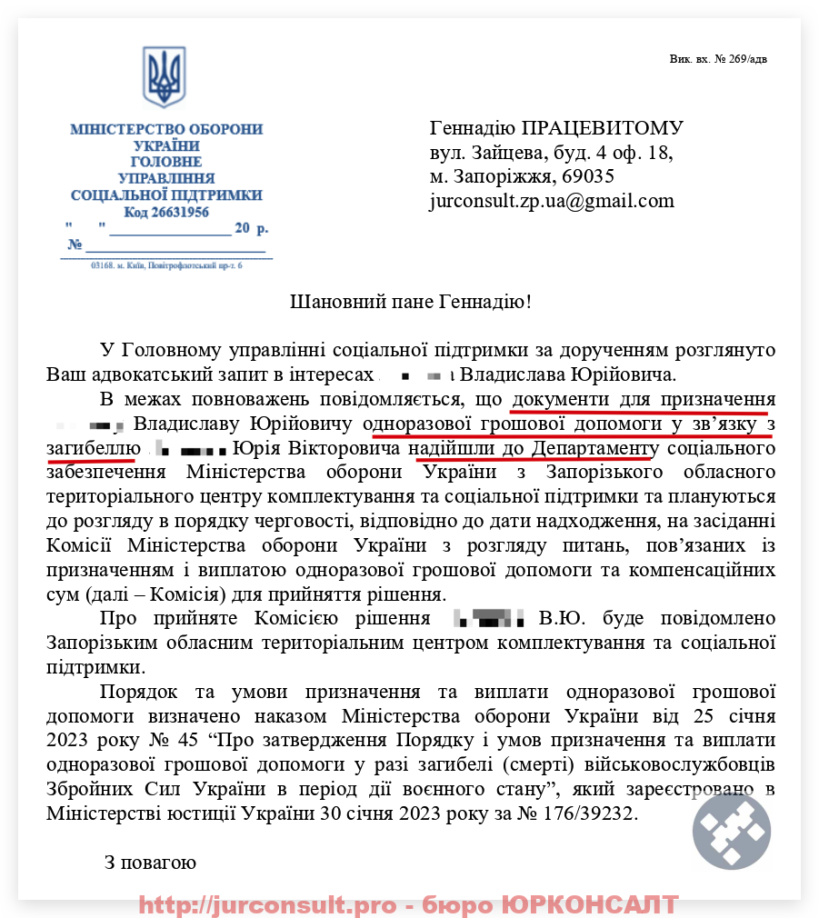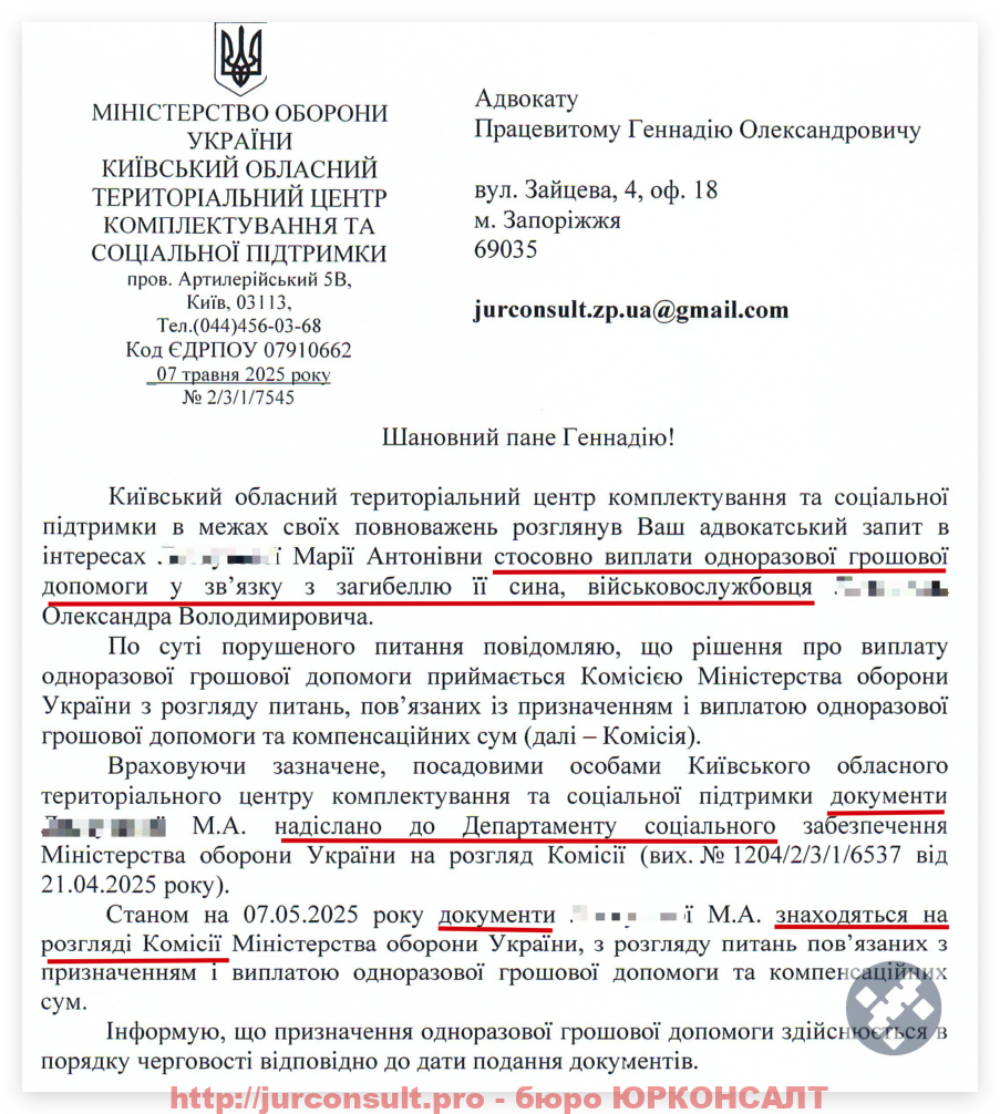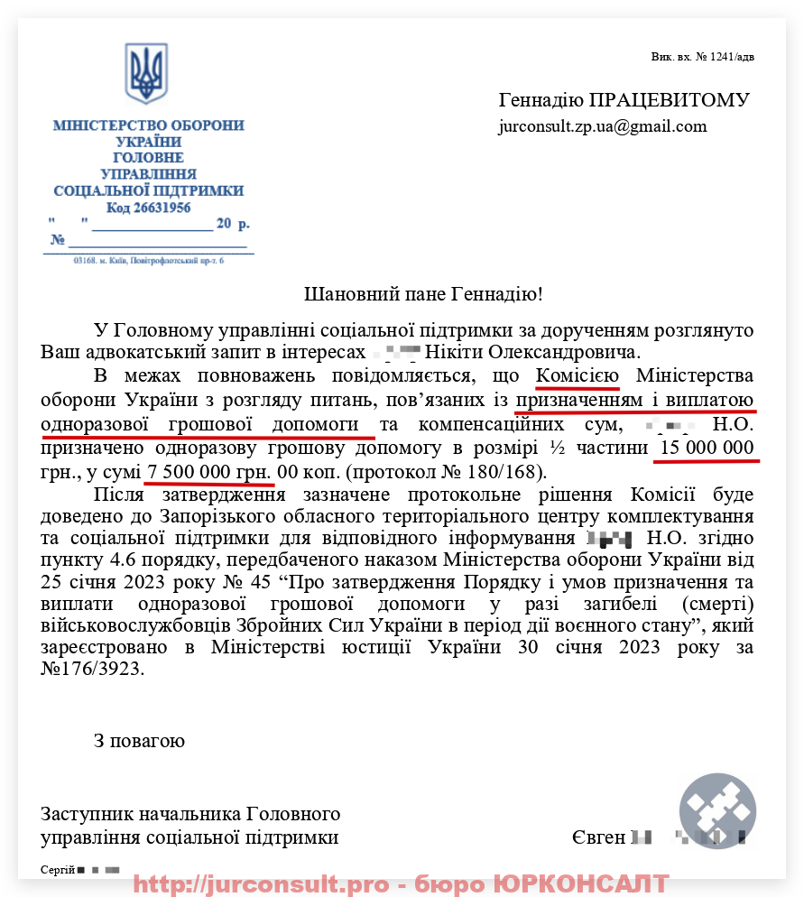 Ось ви бачите результат по справі нашого клієнта – повнолітнього сина загиблого військового: