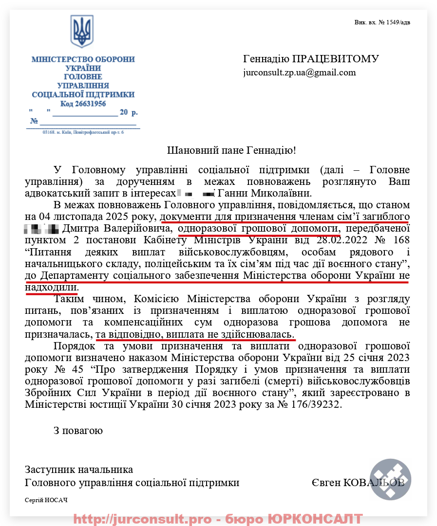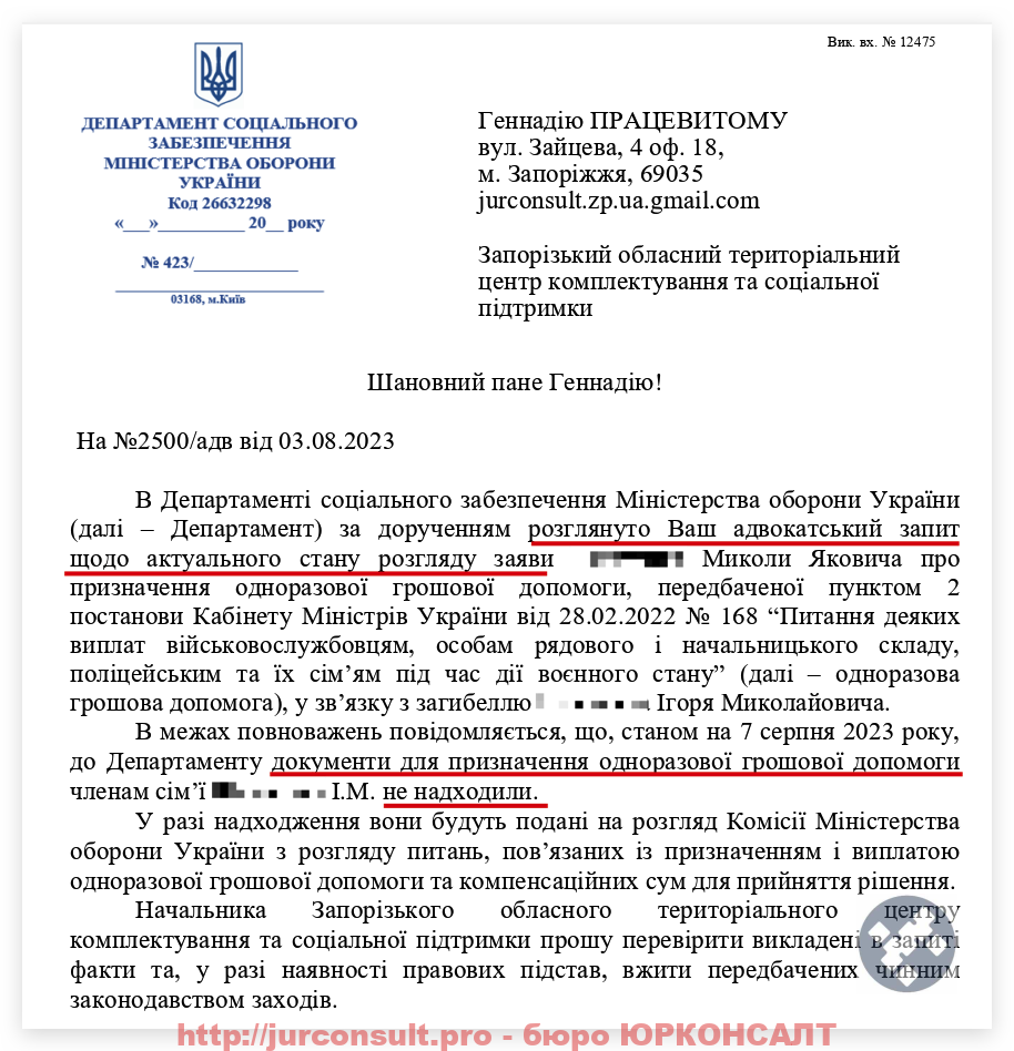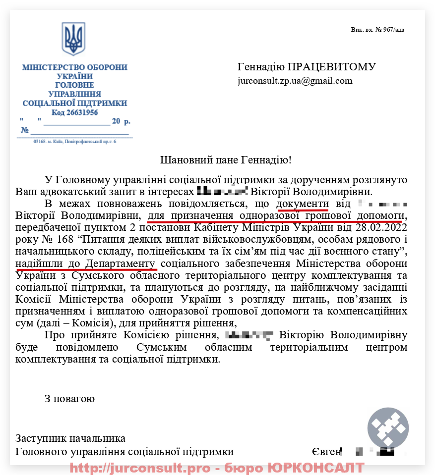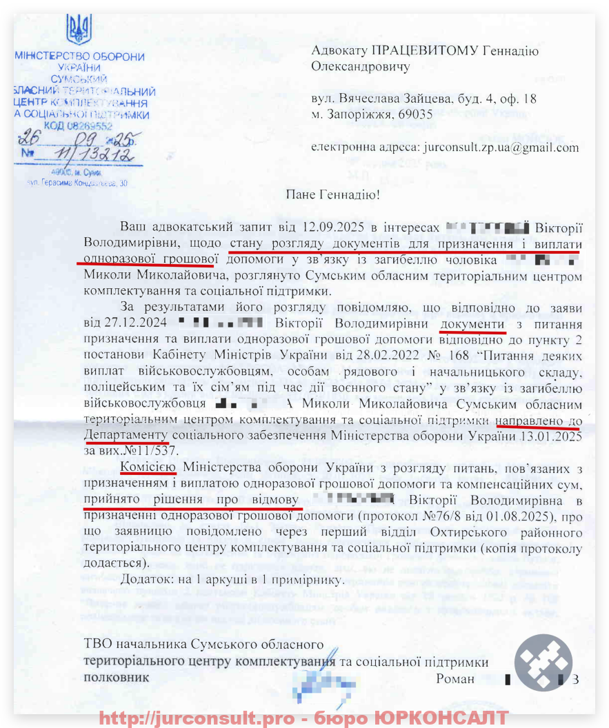 Ось ви бачите результат по справі нашого клієнта – повнолітнього сина загиблого військового: