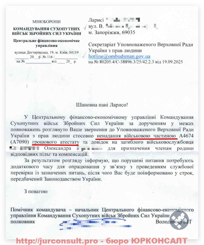 Після наших звернень всі необхідні документи від частини оформлюються в адекватні строки.