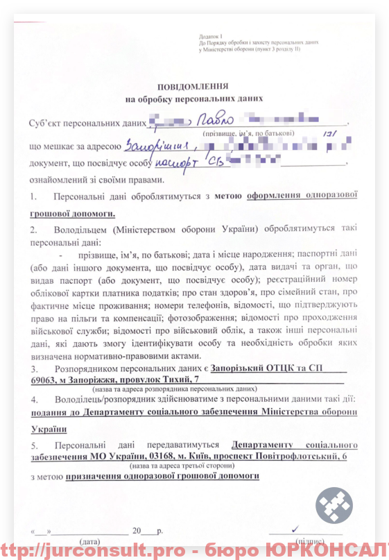Також до заяви на оформлення ОГД додається згода на обробку персональних даних. Були випадки, коли без вказаної заяви документи поверталися з Департаменту до районного ТЦК: