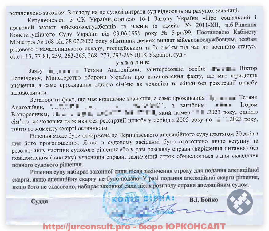Ми виграємо суди для отримання виплат цивільними дружинами!