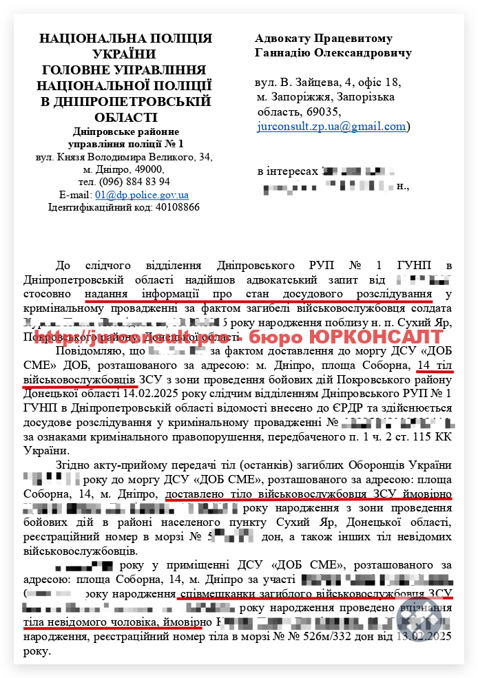 - чи проводила військова частина розслідування обставин зникнення безвісти. Чи отримали ви відповідний акт або сповіщення