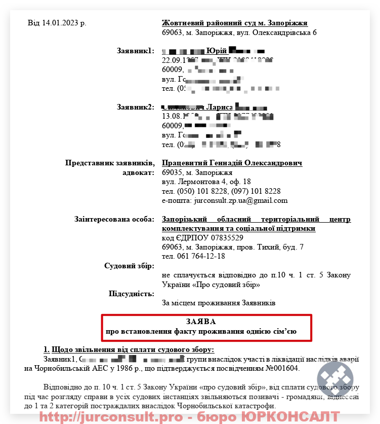 Для того, щоб таке рішення отримати ми в інтересах клієнта звертаємося до суду з заявами про встановлення фактів та повністю супроводжуємо цей процес (збираємо докази, допитуємо свідків тощо):
