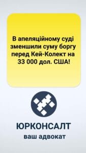 💼 Адвокатське бюро «ЮРКОНСАЛТ» успішно виграло справу у суді та зменшило суму боргу перед Кей-Колект на 33 000 доларів США.