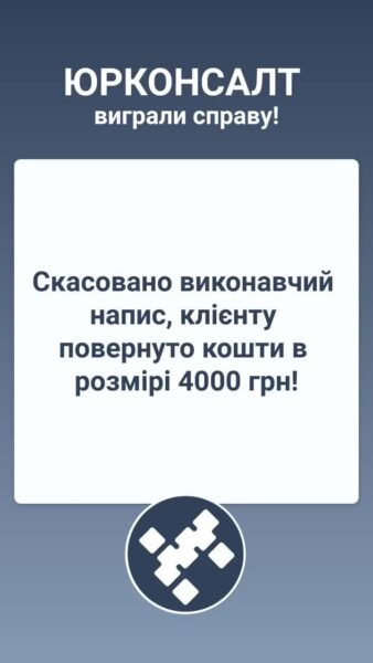 Исполнительная надпись была аннулирована, клиенту были возвращены средства в размере 4000 грн