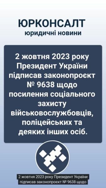 2 октября 2023 года Президент Украины подписал законопроект No9638 «Об усилении социальной защиты военнослужащих, полицейских и некоторых других лиц»