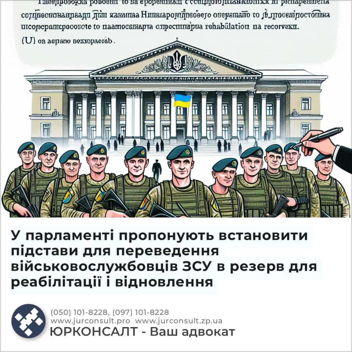 ⚖️ Верховна Рада України наразі розглядає законопроект №12217, який пропонує внести зміни до Закону «Про військовий обов’язок і військову службу», з метою регламентування переведення військовослужбовців Збройних Сил України в резерв для реабілітації та відновлення. Згідно з законопроектом, главу V Закону буде доповнено новою статтею 26-3 «Проходження служби у військовому резерві для реабілітації під час воєнного стану».