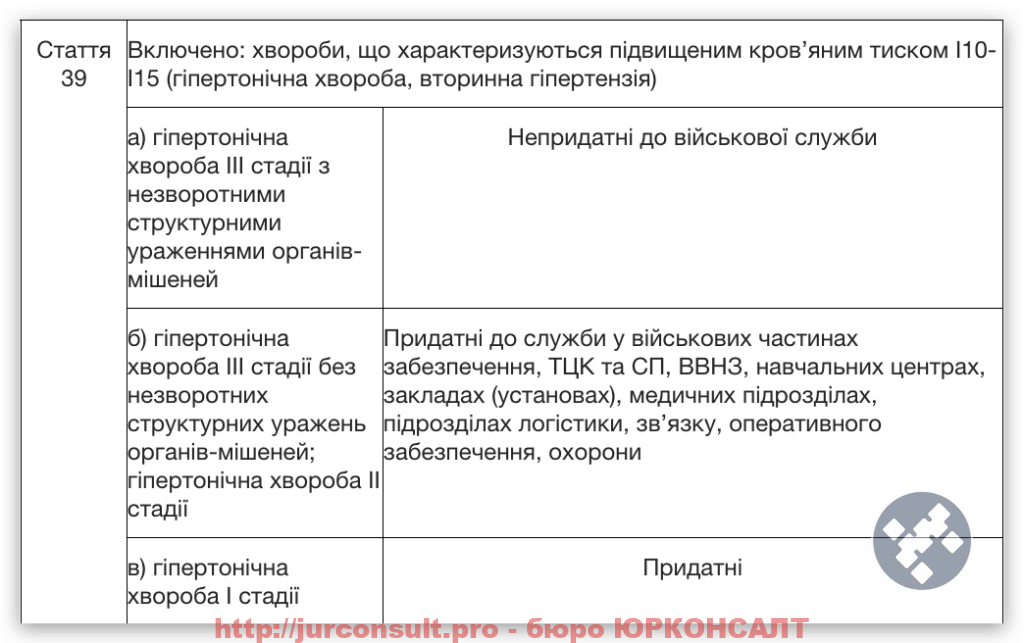 Статья 39 Списка заболеваний ВЛК: гипертония и годность к службе
