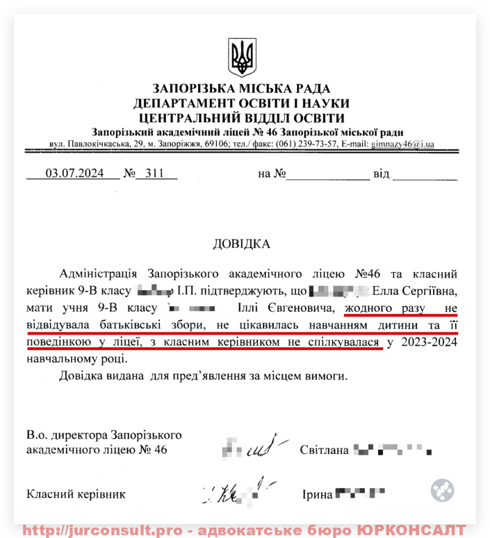 • характеристики з місця проживання, школи, садка, гуртків – хто фактично займається дитиною;