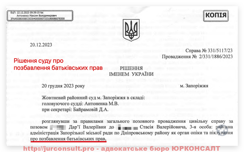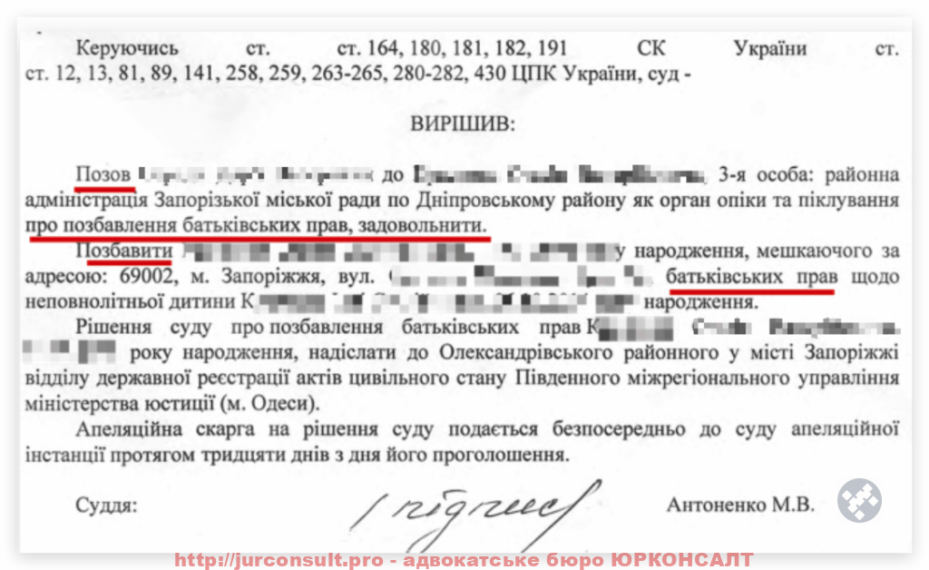 Ми отримали не одне рішення суду про позбавлення батьківських прав на користь наших клієнтів: