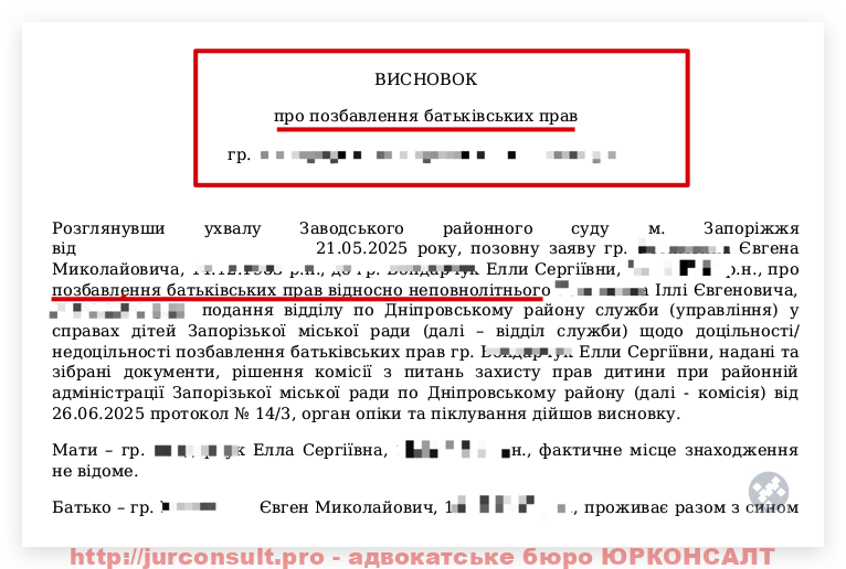 Висновок органів опіки хоча і не є обов’язковим для суду, але суттєво підвищує шанс виграти справу про позбавлення батьківських прав: