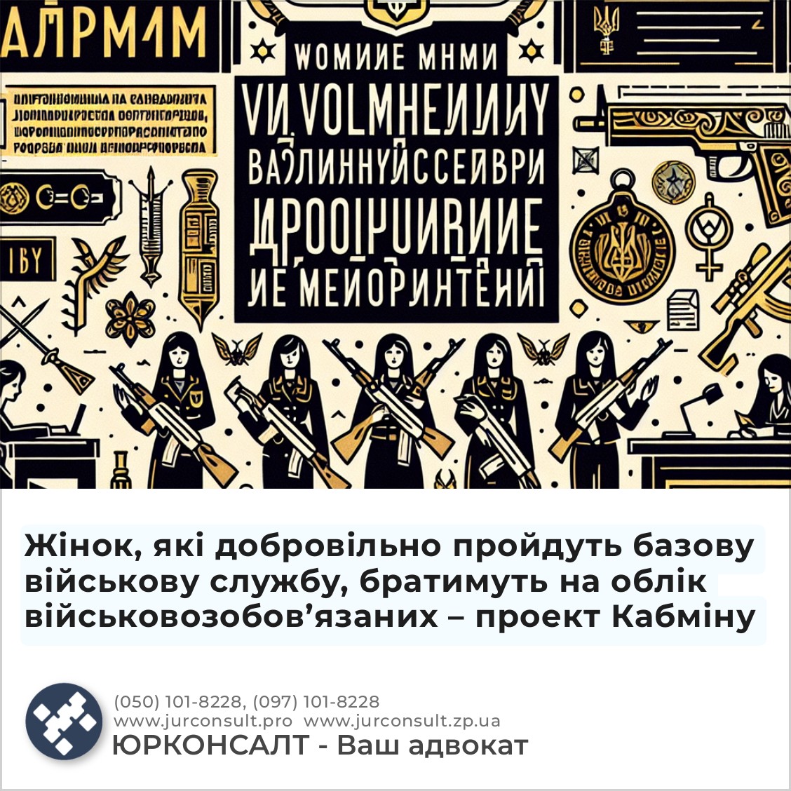 📄 Проектом Кабинета Министров Украины No12076 предлагается включить женщин, которые добровольно проходят основную военную службу, в воинский учет военнообязанных. На первом этапе, перед отправкой на основную службу, их будут оформлять как призывников.