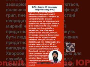 Чи знаєте ви, що стаття 45 розкладу хвороб наказу 402 визначає придатність людини до активної служби? Основні захворювання, які враховуються, включають респіраторні інфекції, грип, пневмонію та інші. Військовозобов’язані можуть вважатися непридатними до служби в реальний час, а в окремих випадках — обмежено придатними. Стаття 45 також охоплює хронічні захворювання, такі …