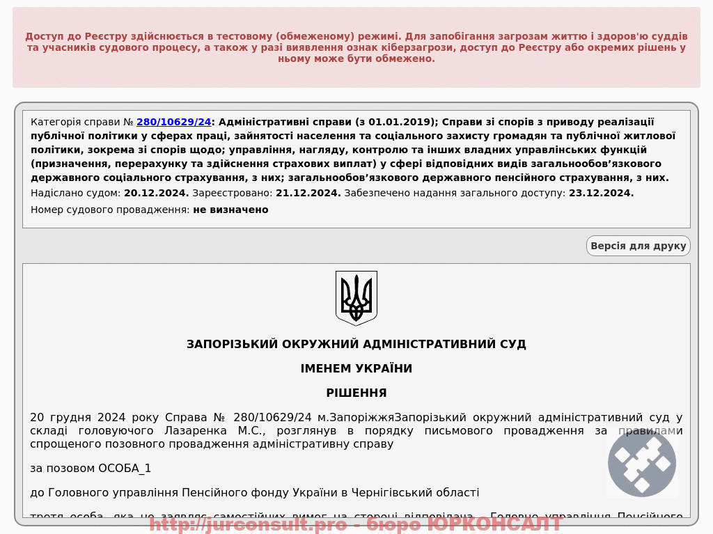 Клієнт звернувся після відмови Пенсійного фонду у виплаті одноразової грошової допомоги у розмірі десяти пенсій.