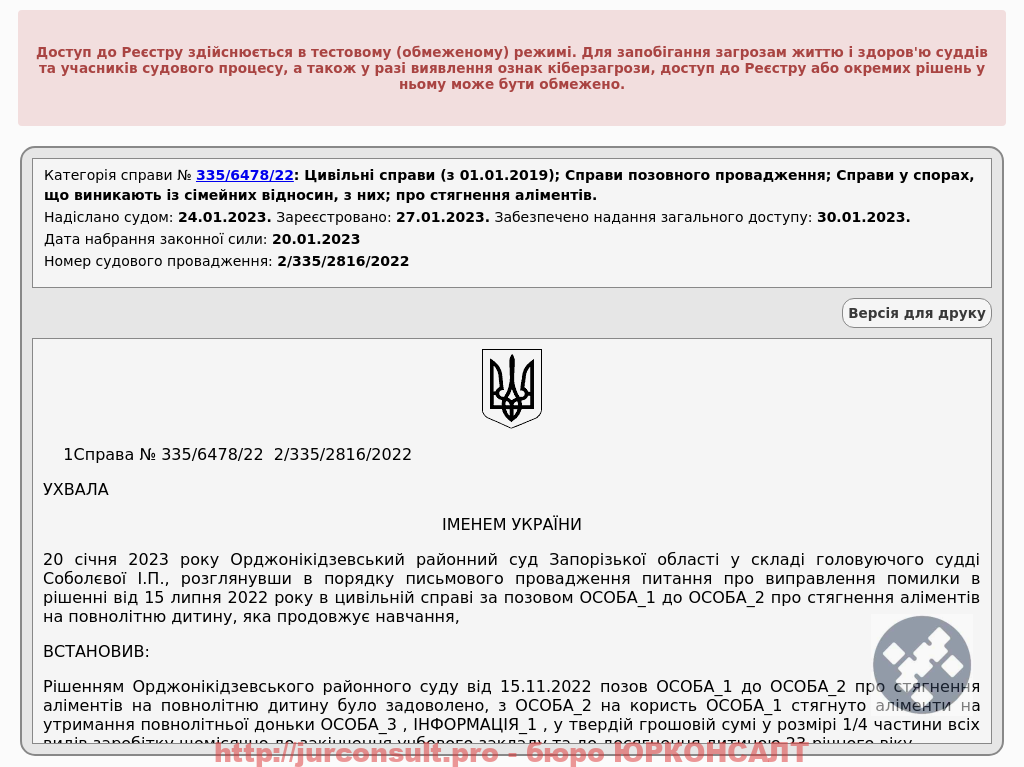 Виправили помилку у рішенні про аліменти