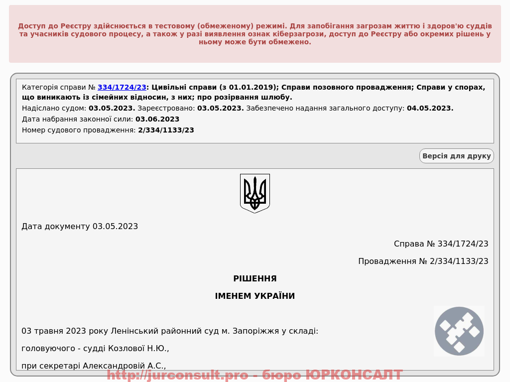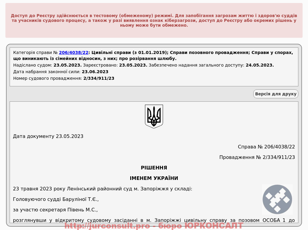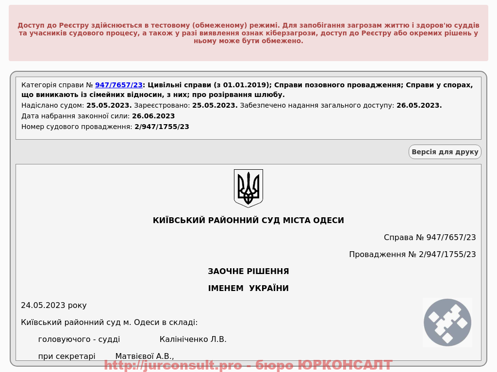 Розірвали шлюб без участі клієнта