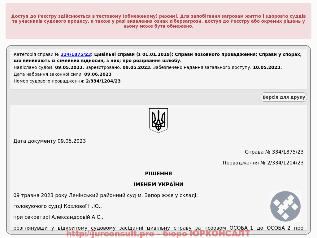 Розірвали шлюб без участі клієнтів