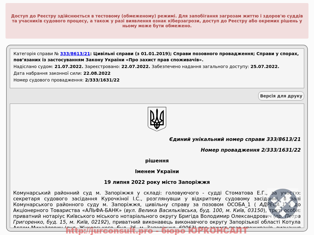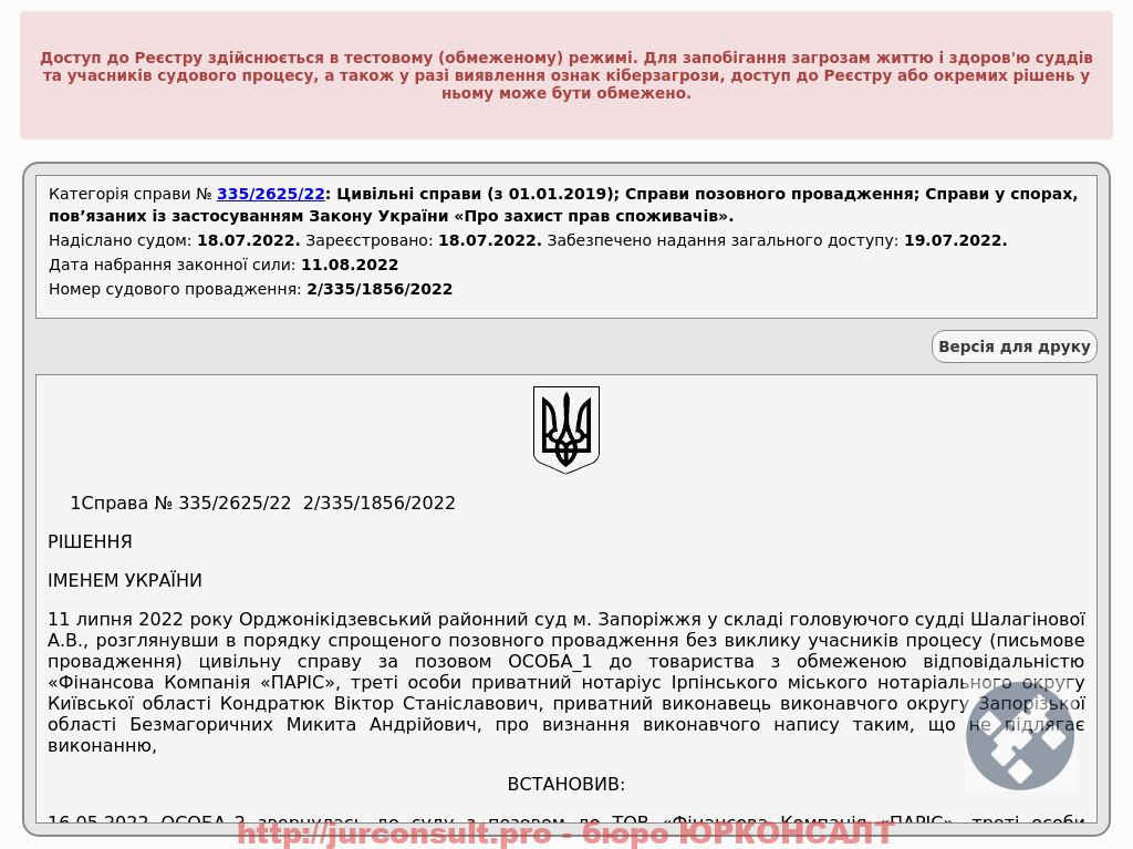 Скасували виконавчий напис УКР КРЕДИТ ФІНАНС