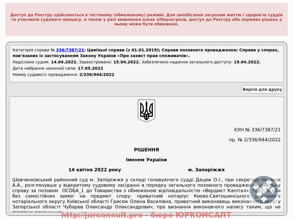 Скасували виконавчий напис УКР КРЕДИТ ФІНАНС