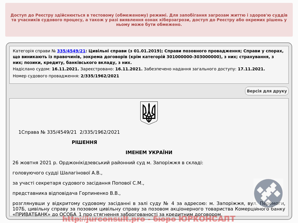 Відмовлено ПриватБанку у стягненні боргу