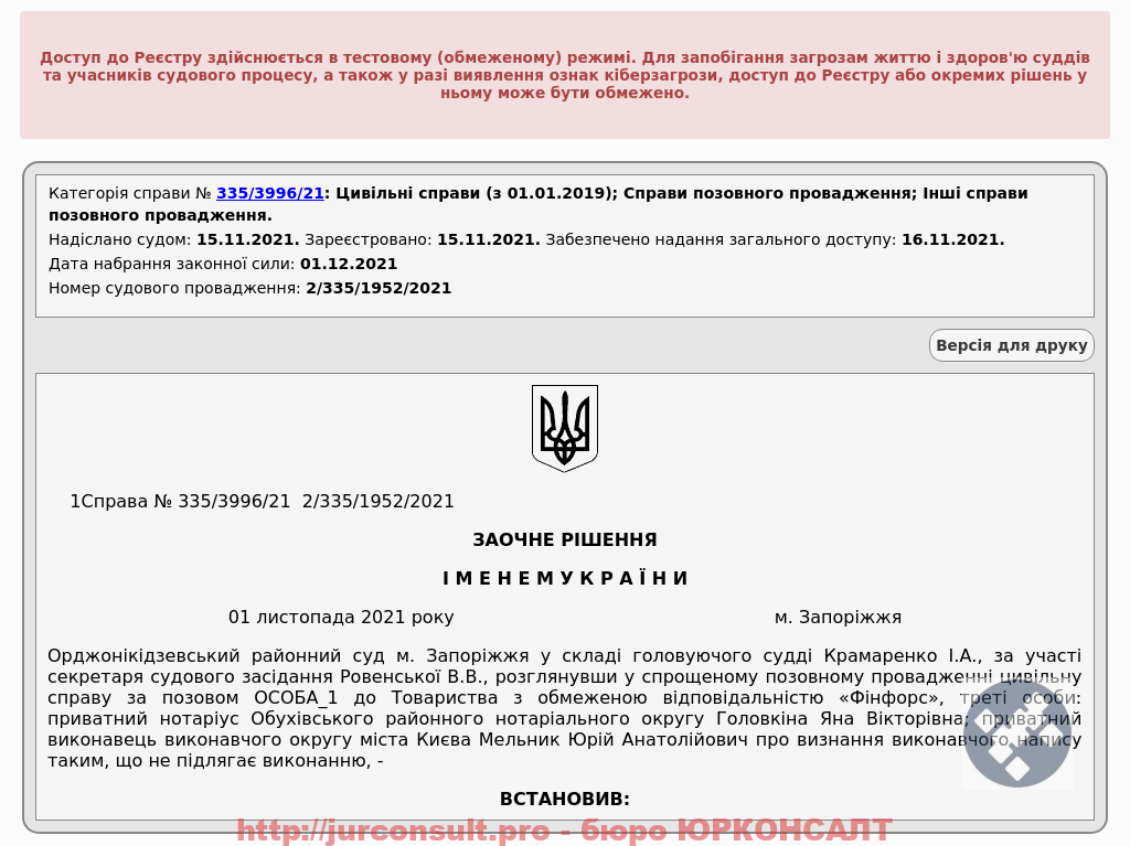 Скасували виконавчий напис Фінфорс на 13 тис. грн