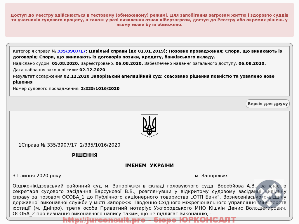 Скасували виконавчий напис ОТП Банку