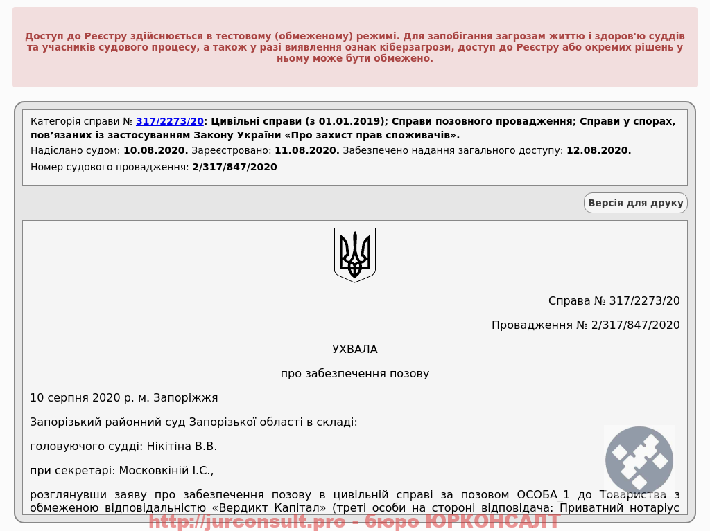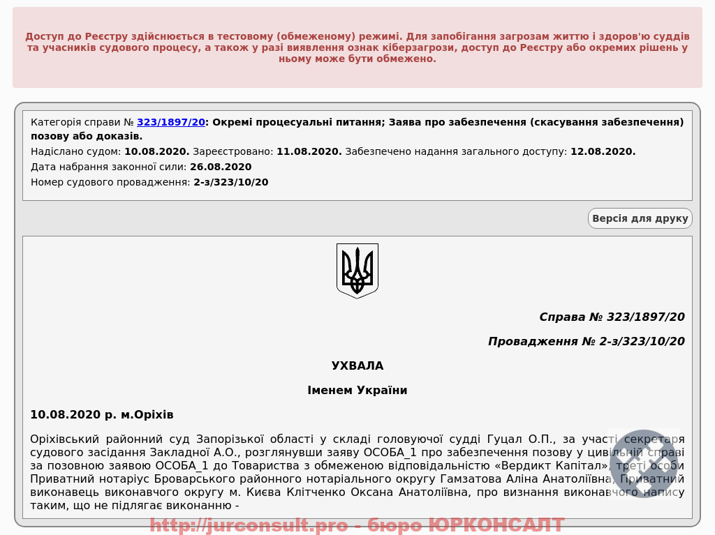 Зупинили стягнення за наказом Вердикт Капітал