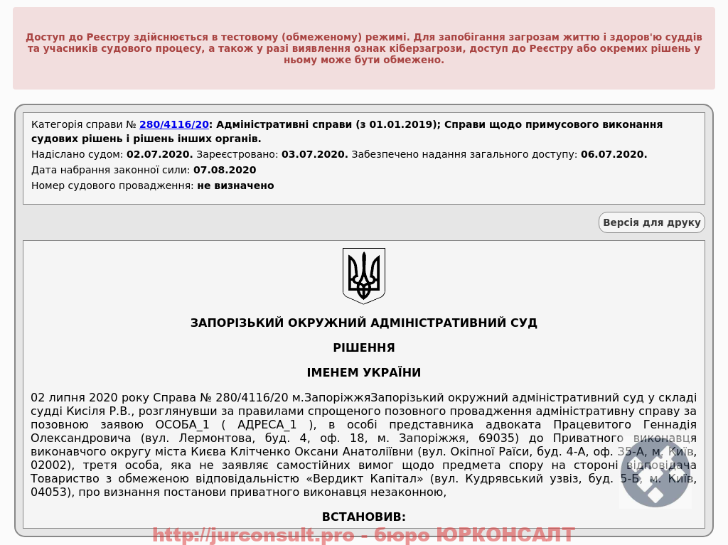 Скасували постанову приватного виконавця