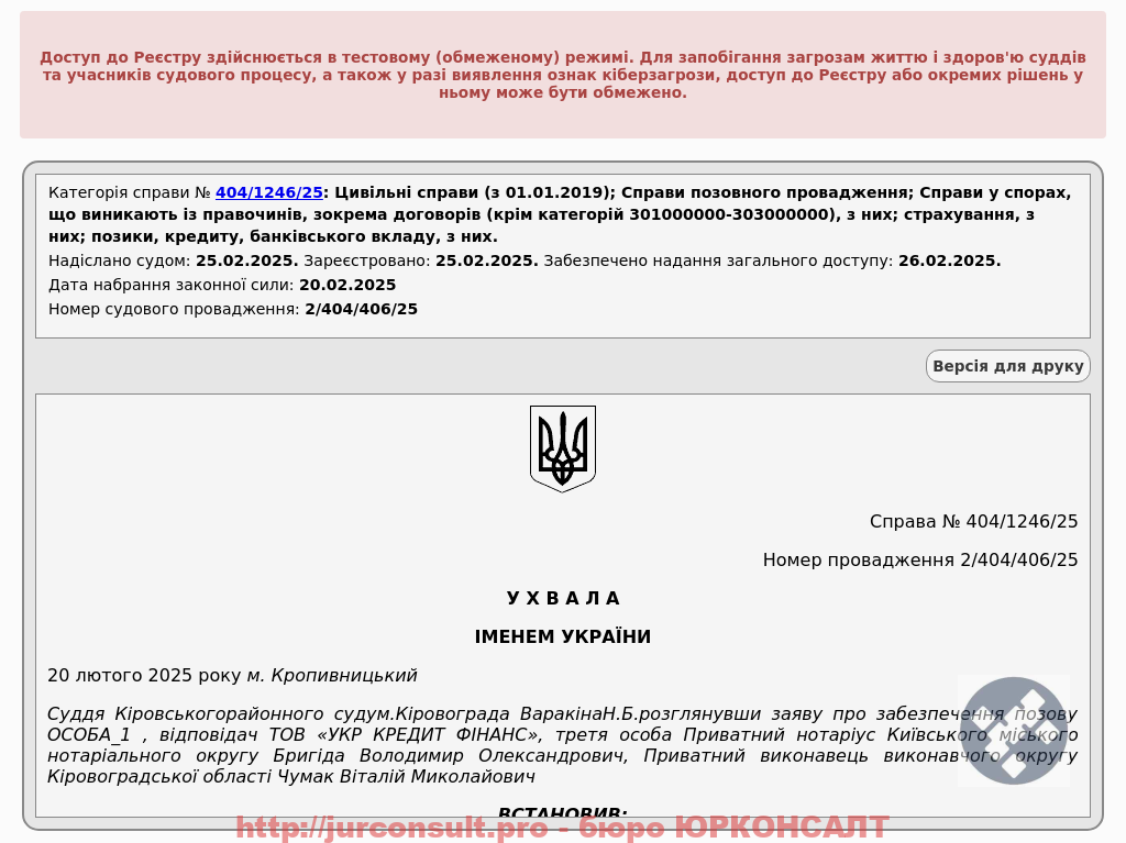 Зупинили стягнення кредиту УКР КРЕДИТ ФІНАНС