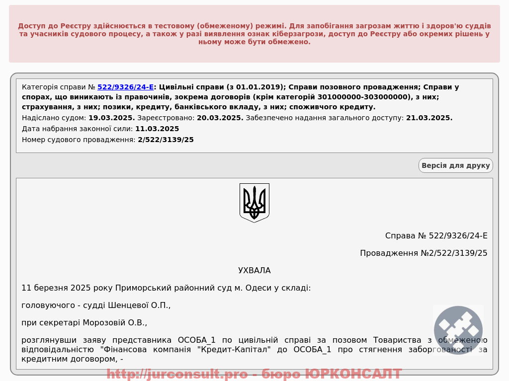 Захистили від кредитної претензії Кредит-Капітал