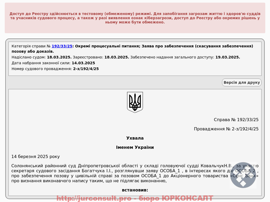 Зупинили стягнення 231 тис. грн від Сенс Банк