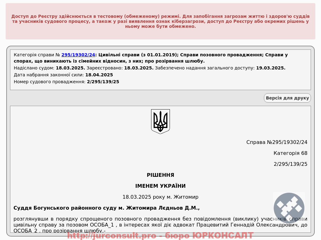 Розірвали шлюб через суд без участі клієнта