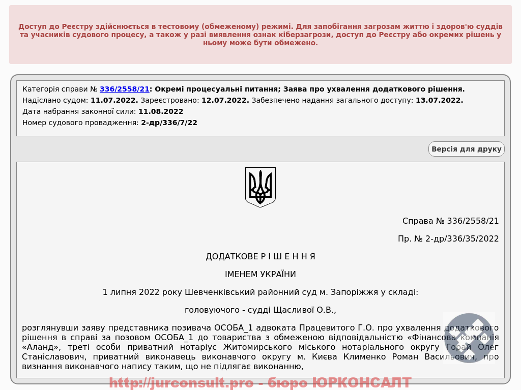 Скасували виконавчий напис УКР КРЕДИТ ФІНАНС