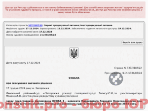 Скасували судовий наказ на 1 500 грн