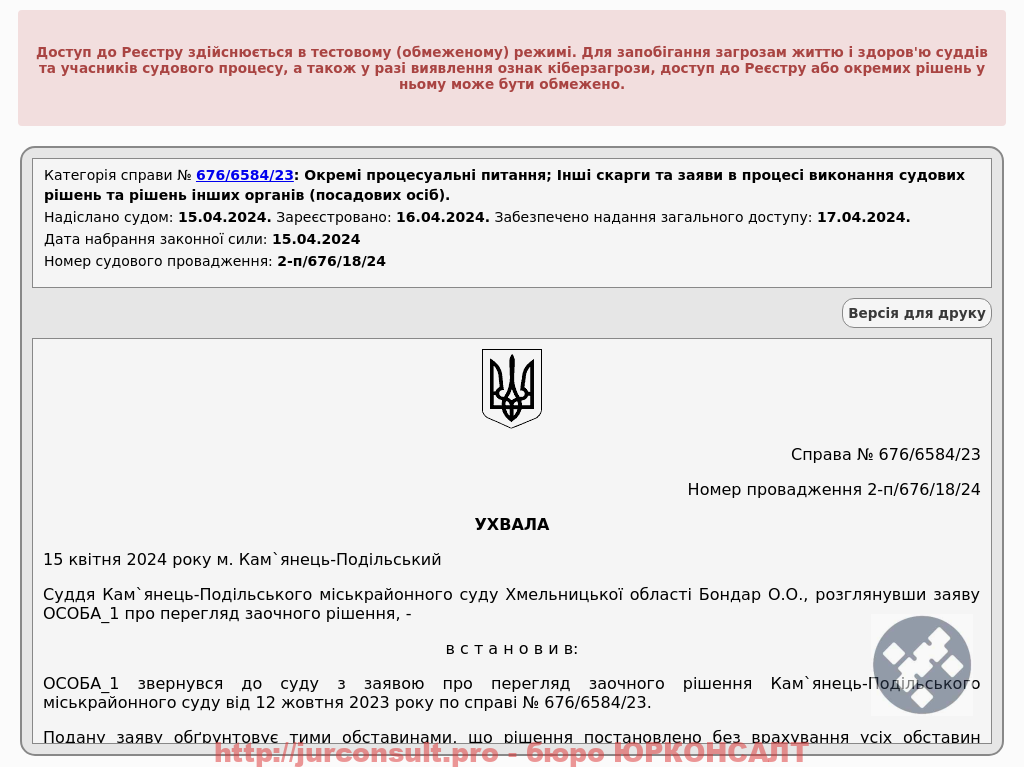 Домоглися перегляду заочного судового рішення