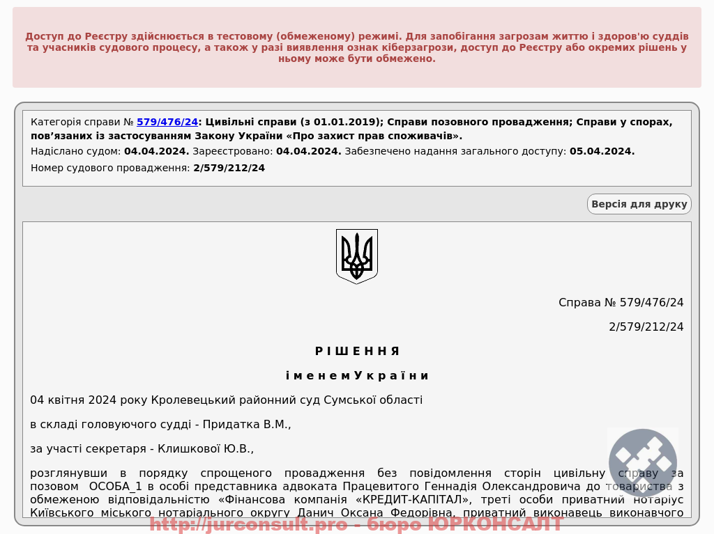 Скасували виконавчий напис КРЕДИТ-КАПІТАЛ