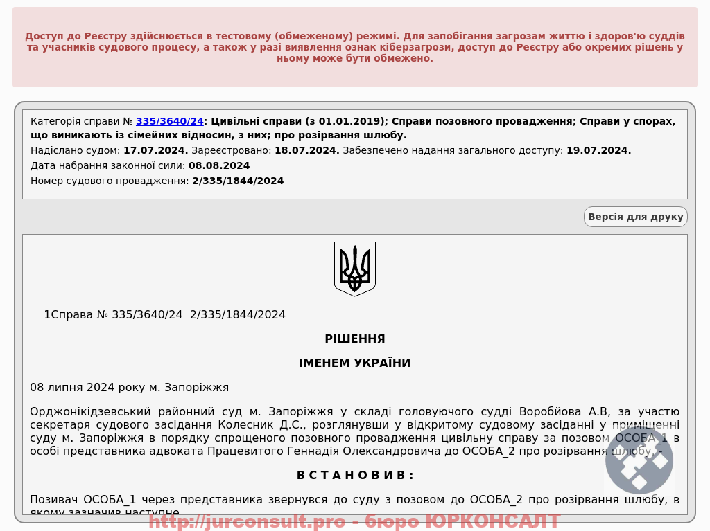 Розірвали шлюб без участі клієнта