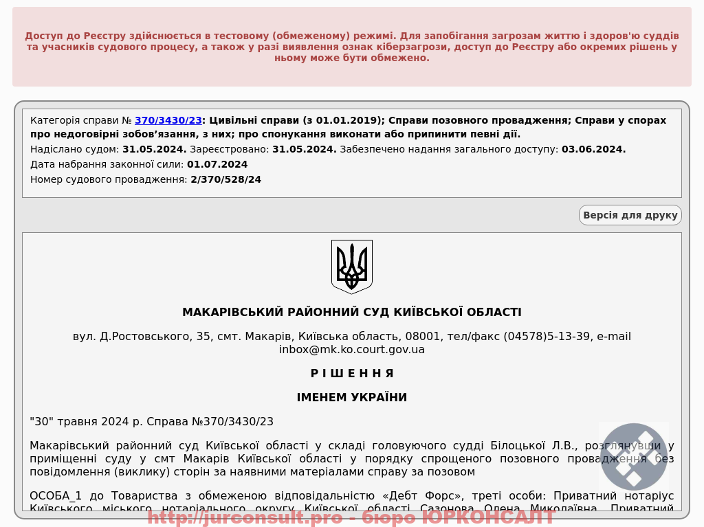 Зупинили стягнення боргу Дебт Форс