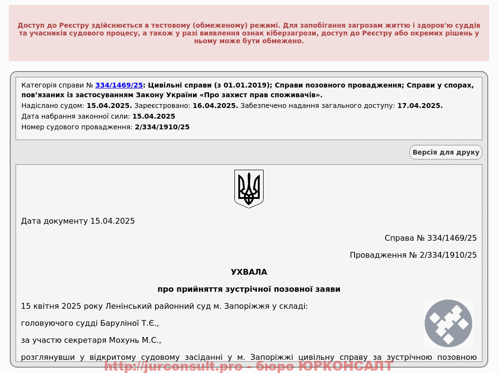 Захистили інтереси клієнта, подавши зустрічний позов проти ПУМБ. Домоглись об'єднання справи й розгляду умов кредитного договору!
