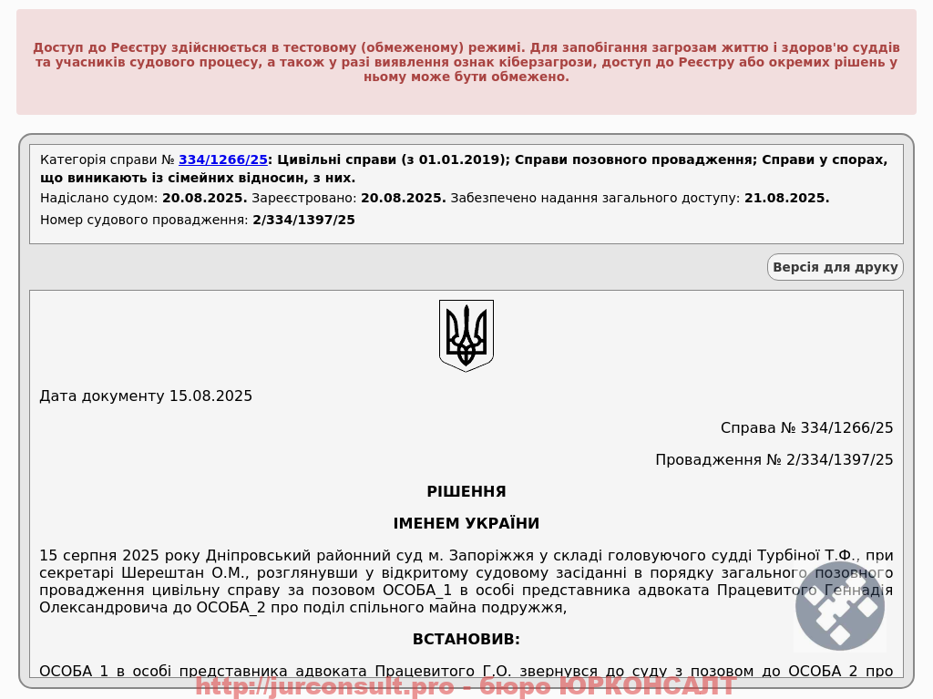 Добилися справедливого поділу квартири, землі та 2 авто. Захистили інтереси клієнта у складній справі щодо майна після розлучення.