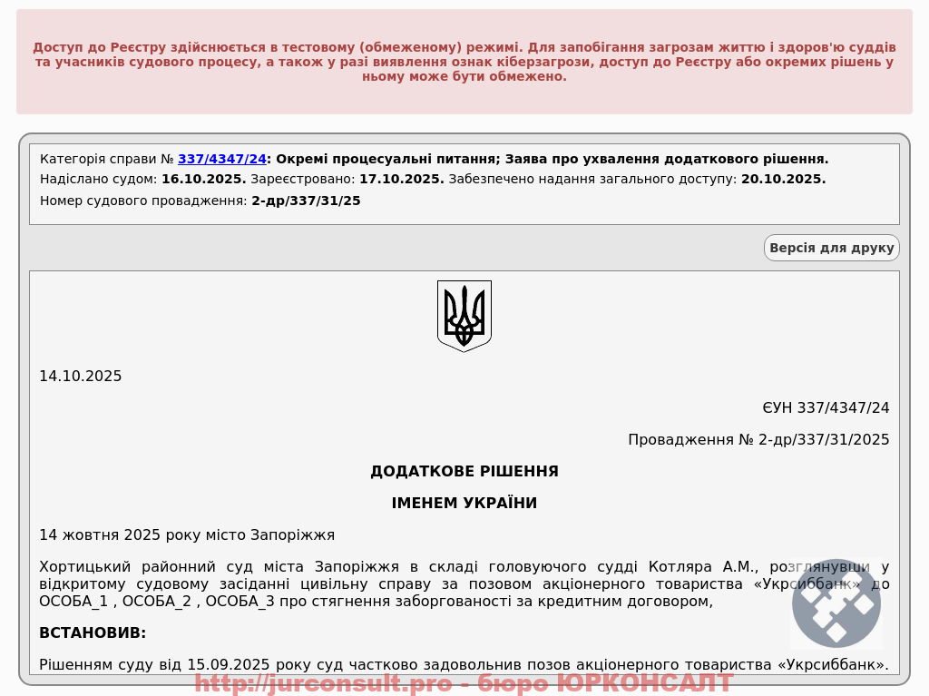 Виграли для клієнта компенсацію судових витрат від Укрсиббанку на 15 000 грн!